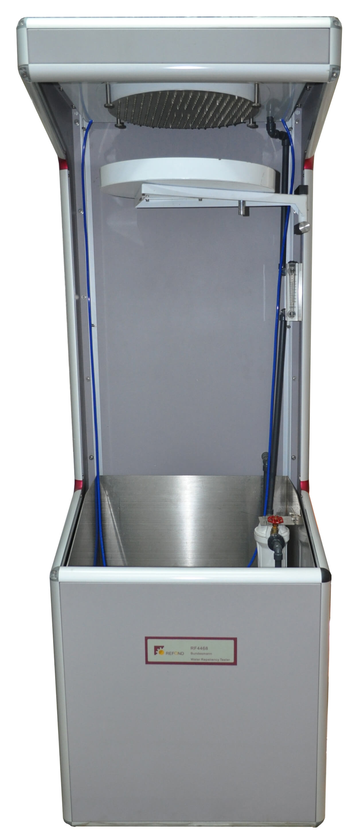 RF4468 邦迪斯門拒水性能測試儀,包括主機、4個截面積相同的測試杯(帶雨刮器)、噴淋頭、雨量控制器等。